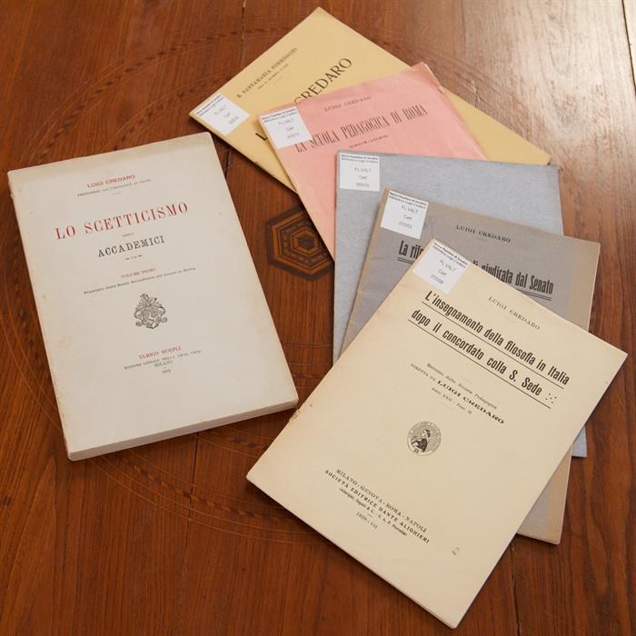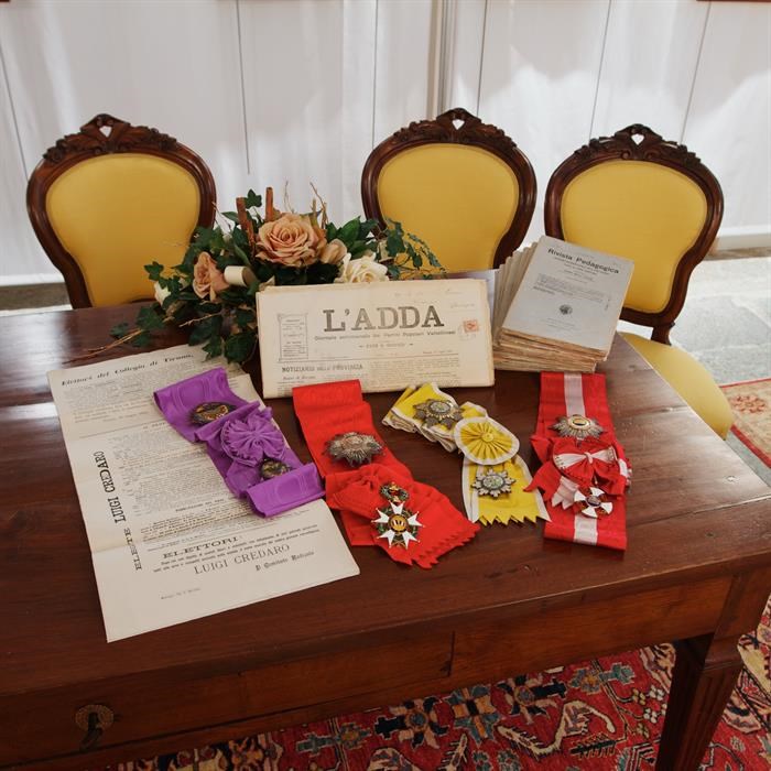 L’archivio documentario è costituito da scritti autografi di Luigi Credaro relativi ai suoi ruoli istituzionali di ministro, senatore e docente universitario, relazioni e schemi di lezioni, corrispondenza con personalità politiche e accademiche, materiali a stampa di atti parlamentari e volantini elettorali. Fanno parte di questa serie le onorificenze ricevute dal Ministro, fra le quali spicca la Legion d’Onore, conferita a Credaro dalla Repubblica francese nel 1913.